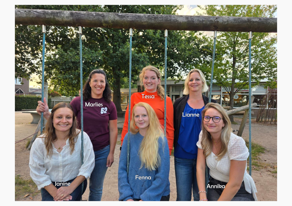 Fenna (groepscoördinator, intake en rondleidingen nieuwe kinderen), Annika, Janine, Tessa, Marlies, Lotte, Willemijn, Maureen, Danee en Tjeard.